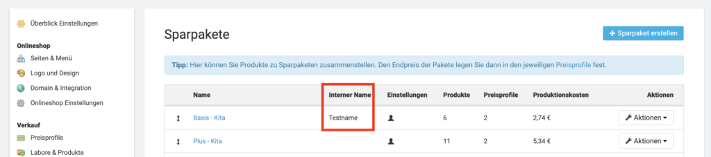 Nutze interne Namen für deine Sparpakete