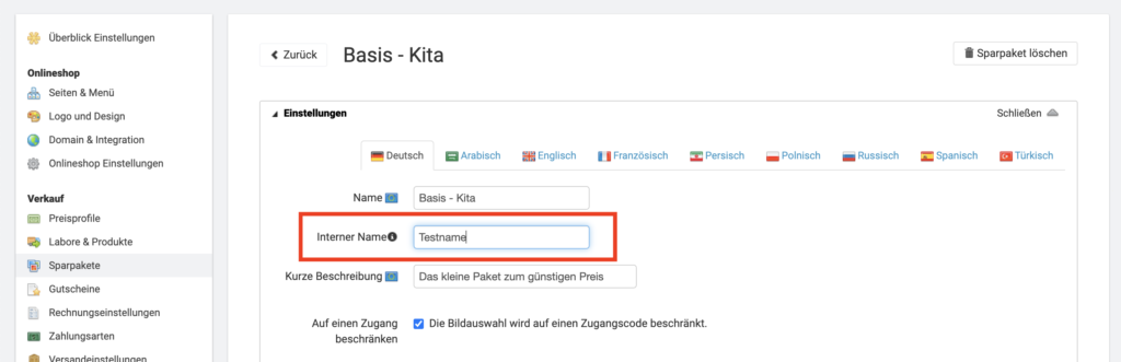 Als Fotograf:in hast du vielleicht auch Sparpakete mit unterschiedlichen Inhalten, die den gleichen oder einen sehr ähnlichen Namen haben. Um einen besseren Überblick zu behalten, kannst du jetzt in den Einstellungen der Sparpakete einen internen Namen vergeben, der nur für dich sichtbar ist.
