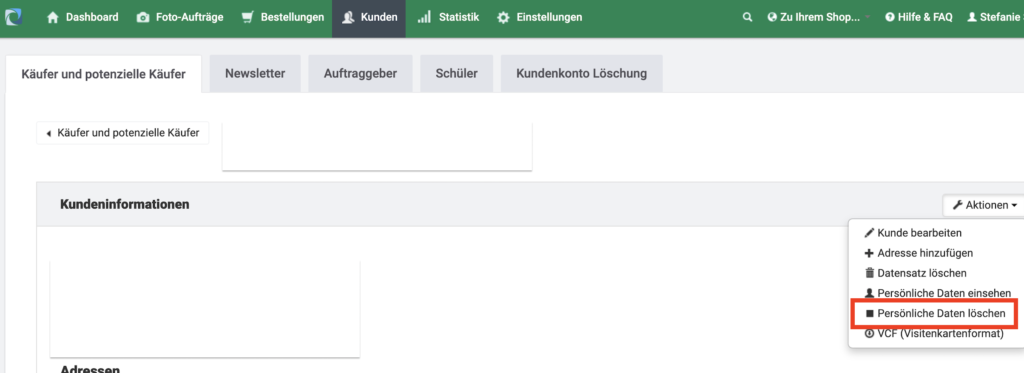 Veranlasse die Löschung von Daten deiner Kund:innen direkt in deinem Adminbereich