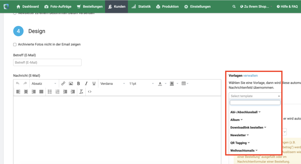 fotograf.de stellt dir viele verschiedene Newsletter-Vorlagen zur Verfügung, die dir dabei helfen, deine Kund:innen an den Fotoverkauf zu erinnern und den Umsatz zu steigern.