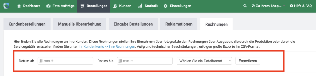 Dein Wunschzeitraum beim Rechnungsexport